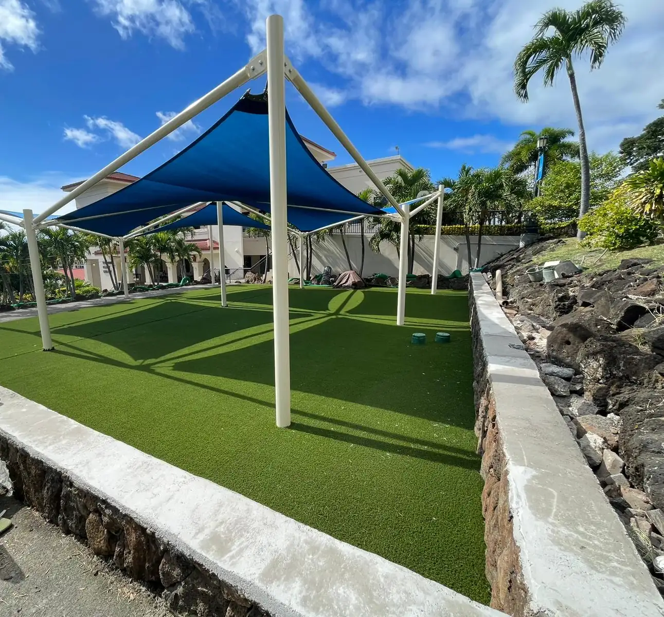At SYNLawn Hawaii, we provide artificial grass to create a unique putting green layout for you. No matter the size or scope of the artificial golf green project you have in mind, we can help you plan it and build it. Also, our synthetic turf lawns drain water fast, so stormy weather won’t flood your golf greens and keep you from playing your favorite game.